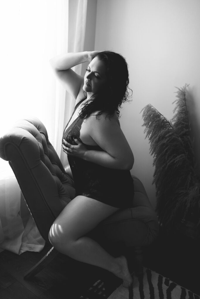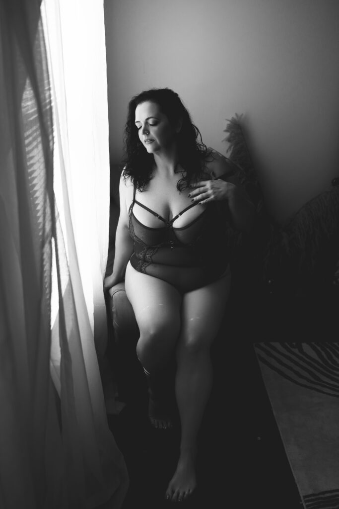 What made you choose Karla Mason Boudoir? I am a big believer in signs. I have always in the back of my mind thought a boudoir shoot would be fun and liberating, but I never really thought I had the courage…I always thought “maybe one day…”Nor did I think someone with my body type could do one…I’ve always been bigger – I grew up in the society where I was taught to hide my stomach and my hips as much as possible and wear loose clothing. I was always curious what it might be like to be a bigger girl in a sexy boudoir shoot in lingerie and not in sweatpants and an oversized sweatshirt. Fast forward to a few months ago, I saw a post in a Facebook group and there was a raffle for a special session offer…I took this as a sign and thought that since I was seeing that post, I might as well register for the raffle. If I ended up winning, great, it was a sign I was supposed to do it. If I didn’t – ok, it’s not meant to be. But at least I was giving myself the opportunity to get out of my comfort zone and do something that I had always thought would be fun, but was a little bit too apprehensive. I ended up winning – I was nervous, but once I had my intro call with Karla, I felt so excited.